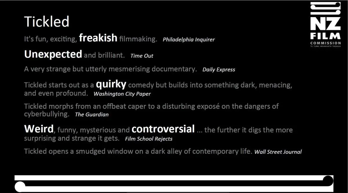 Tickled is, to also quote the critics, freakish, quirky, unexpected, weird and controversial: