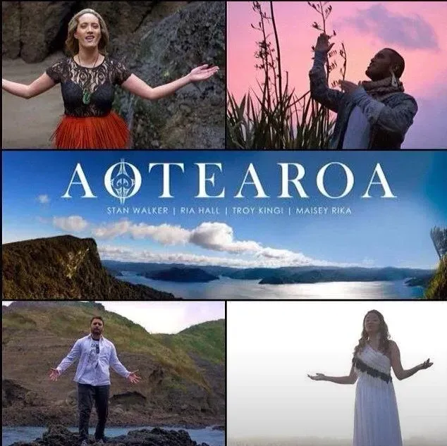 ‘Aotearoa’, performed entirely in Te Reo by Stan Walker, Troy Kingi, Ria Hall and Maisey Rika, was composed by Walker and Vince Harder, with the Te Reo translation provided by Te Haumihiata Mason of Te Taura Whiri i Te Reo Maori (The Maori Language Commission).