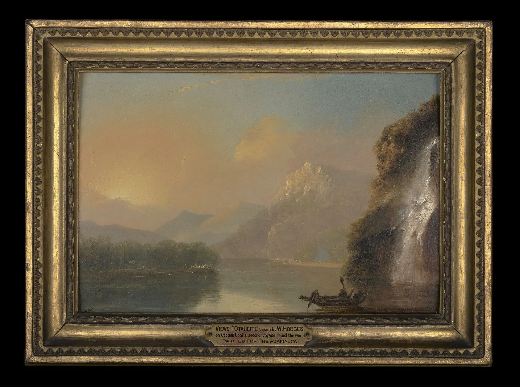 Image credit: William Hodges, Waterfall in Dusky Bay with Maori canoe, 1776, oil on panel. Purchased 2019. Te Papa (2019-0003-1)