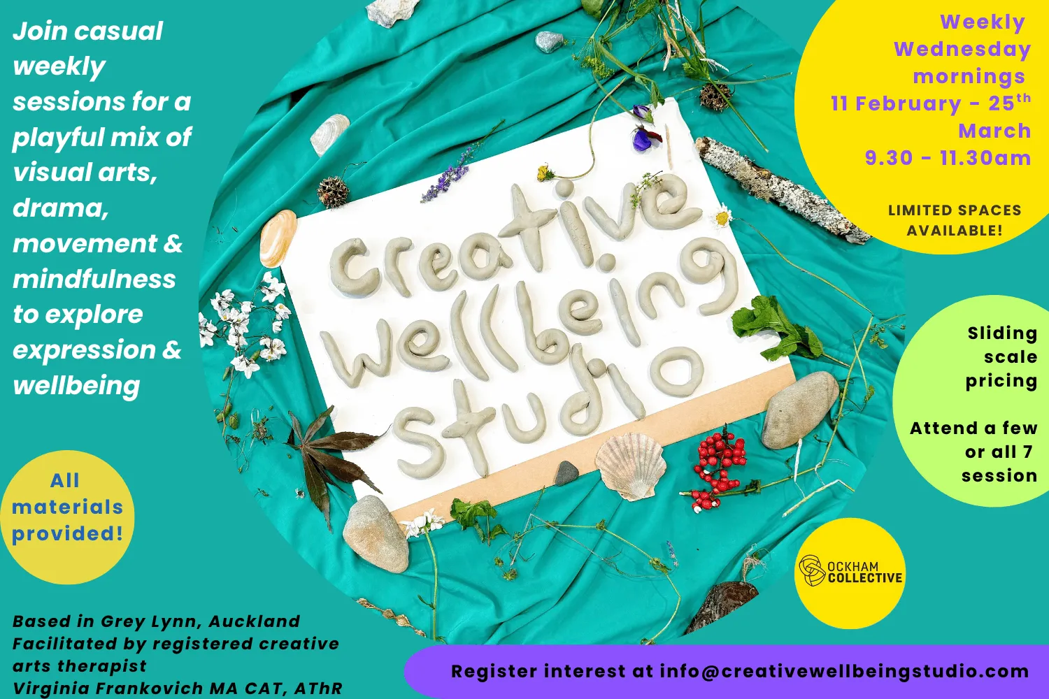 WHO: This studio is aimed at adults who are interested in exploring their wellbeing, creativity and connecting within a group setting.
