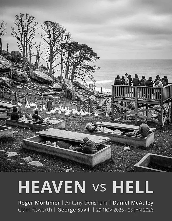 In a suite of new photographs which add considerably to his oeuvre, prominent artist Roger Mortimer upends all norms by using surreal visual devices of peril, contrast and contradiction as narrative elements. Using the metaphor of black and white he builds unforgettable paeans of unease, where nothing is as it should be or first seems. Where hell seems to have arrived or is in a process of emerging…