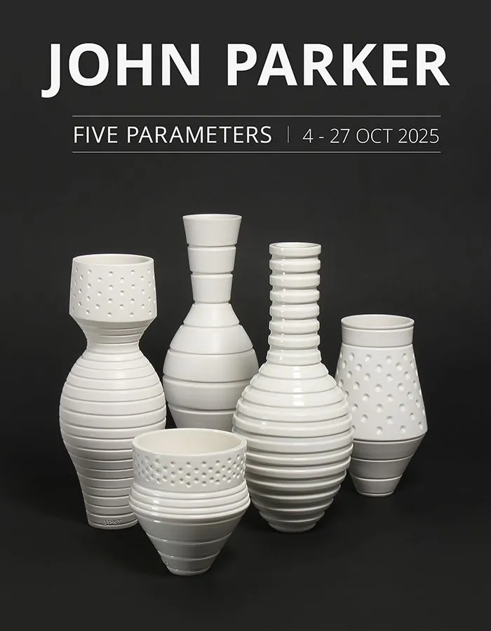 John Parker is one of New Zealand's most celebrated ceramicists, working in a sleek yet austere style inspired by sources ranging from cinema and theatre to industrial and commercial ceramics and early 20th-century art. Despite the works' cool modernity, there is a rebellious playfulness and distinctive perspective which put Parker's exploration of pure form in a class of one within New Zealand ceramics.
