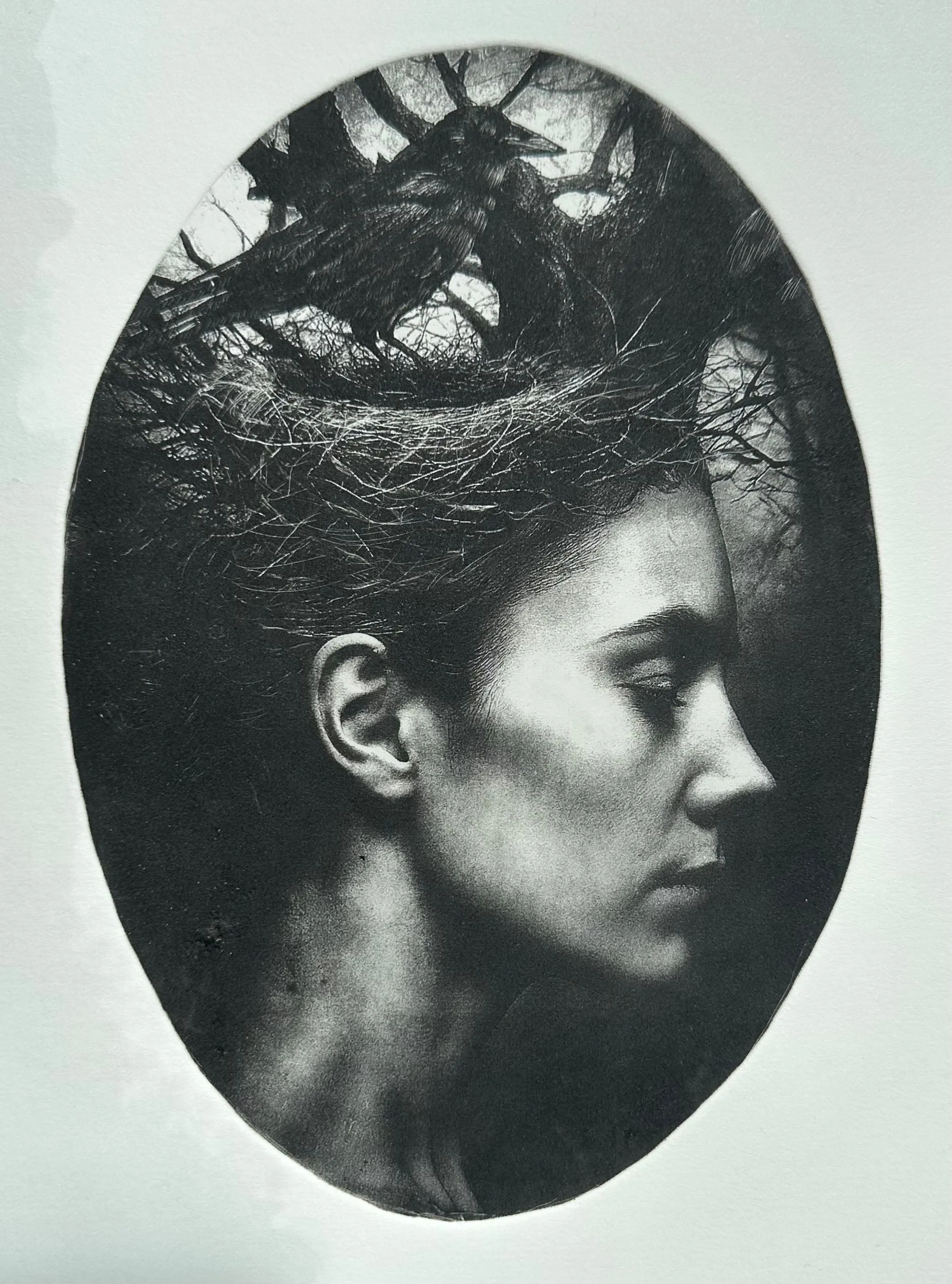The process of building a nest, with its accumulation of materials found at hand and the fragility of its structure, can be interpreted as a metaphor for the passage of time and the lingering nature of memories. Whereas hand gestures, an outstretched hand for example, can connote assistance or guidance in a time of need. The innocent and vulnerable infant in the nest also reflects the artist’s deep concerns about the dangerously fragile relationships between all living things, and our need to preserve and protect nature for our way of life and the planet we live on to survive.