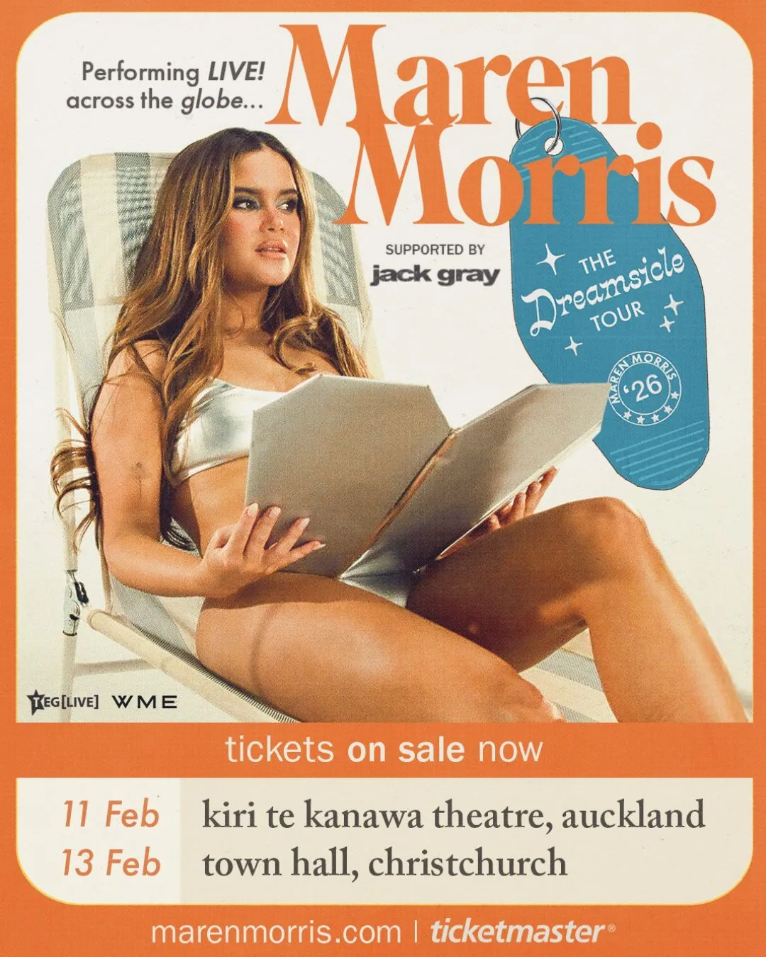 GRAMMY Award-winning singer-songwriter Maren Morris has announced New Zealand tour dates for her highly anticipated The Dreamsicle Tour, bringing Maren’s signature sound and fearless storytelling to the New Zealand fans.