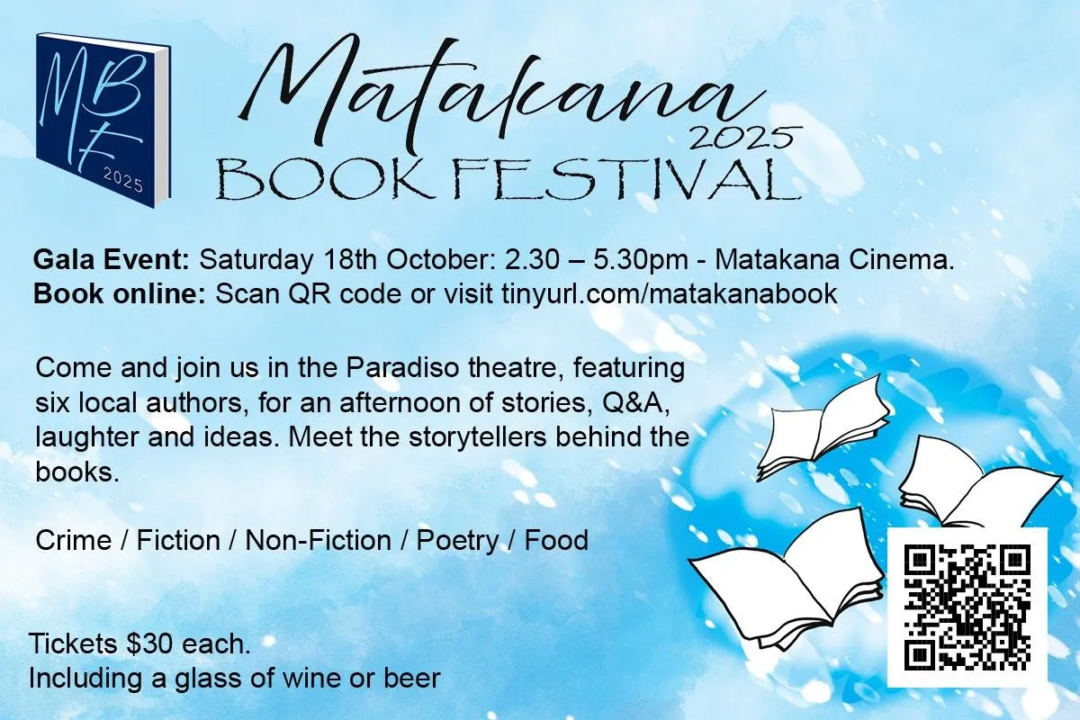 A great opportunity to meet local authors at the first Matakana Book Festival happening 18-19 October in the heart of Matakana and at local libraries- see poster for details and book tickets via Matakana Cinema