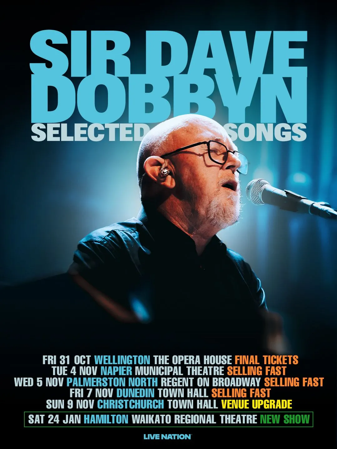 Due to huge demand across already announced tour dates for Aotearoa’s treasured musical voice, Sir Dave Dobbyn and his Selected Songs regional tour, the run will continue into 2026 with today’s newly announced show at Kirikiriroa, Hamilton’s Waikato Regional Theatre on Saturday, 24 January 2026.