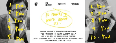 New Zealand Fringe Festival 2015 is upon us, so let PlayShop mend your broken heart with a tale of love, loss, mistrust, and lust. 10 Things I Hate About Us explores the hilarious complexities of a re