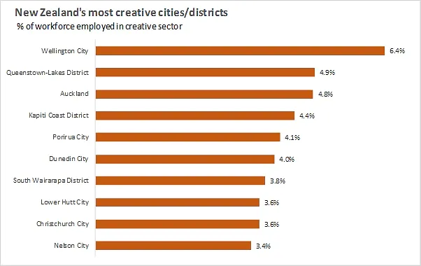 6.4 per cent of Wellingtonians were employed in the creative sector, 1.7 points ahead of the next best, Auckland. Christchurch was down the chart, at 3.6%. But Christchurch has had many challenges and priorities since 2010.