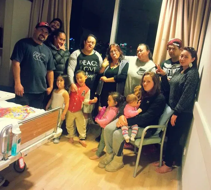 The Mcmanus whānau show their disdain for cancer from her hospital room. Photo: Supplied.