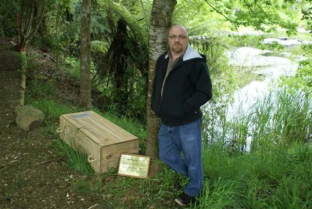 Bernie Harfleet has won an art award for six sculptures in the form of children’s coffins. The artist is a member of the Habeas Corpus Collective and winner of this year’s Harkness Henry Lawyers Award at the Sculpturepark @ Waitakaruru Arboretum. His winning piece is titled ‘Bears’ and references the song ‘ if you go down to he woods today…’