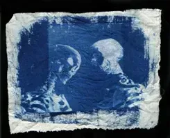Cyanotype is a printing process (pictured above on cloth) which gives a cyan blue print while the Holga is a toy camera which is now appreciated for its low quality aesthetic.