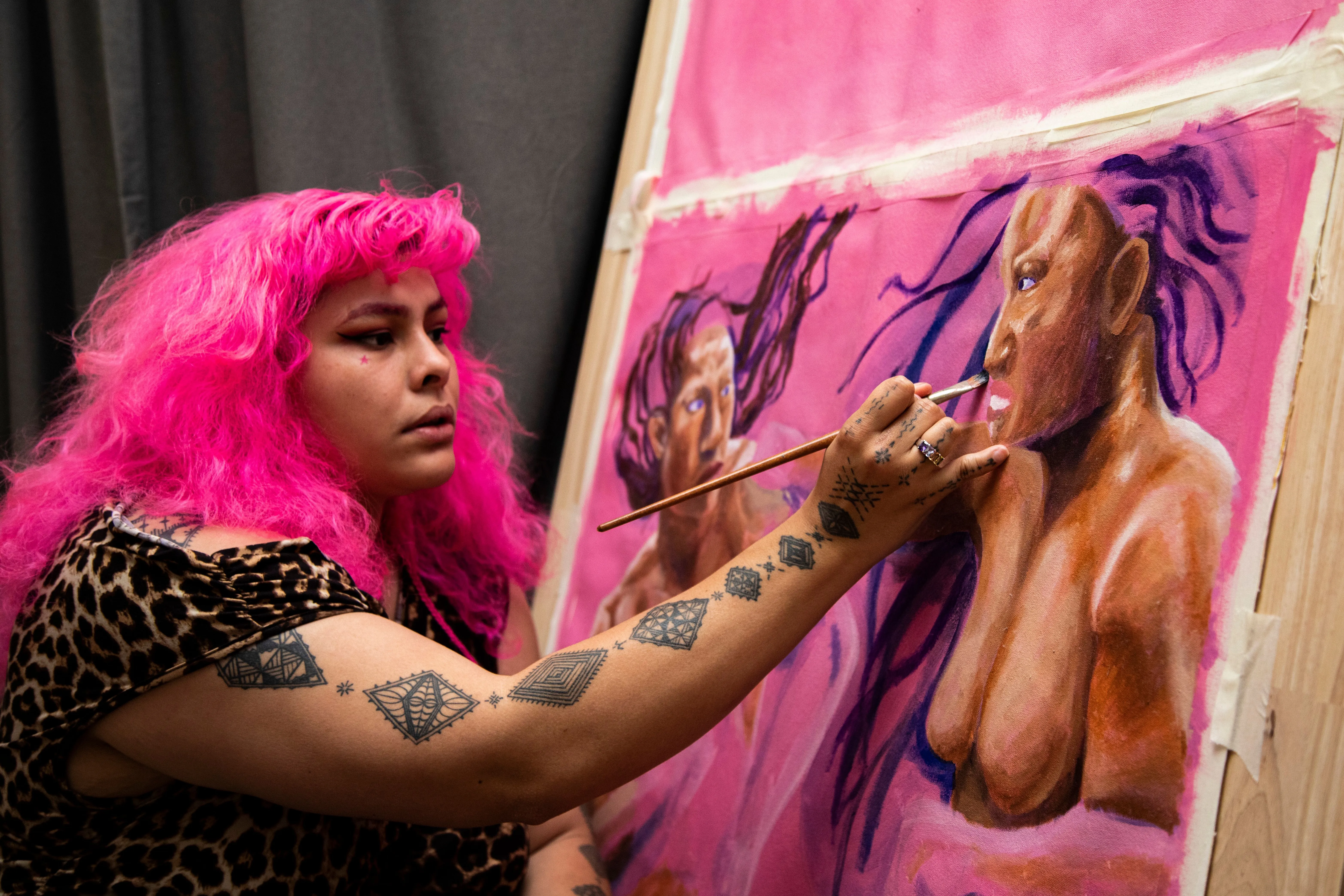 Mel: It’s teaching myself and feeling them out in real time. I don’t draw plans, which makes my paintings like six months long. But, I move with where the paint goes and move with it. I think having physical representations is so important. The research going into the composition teaches me about these atua in terms of their personalities – especially lesser known gods. Recognising their likeness is really important.