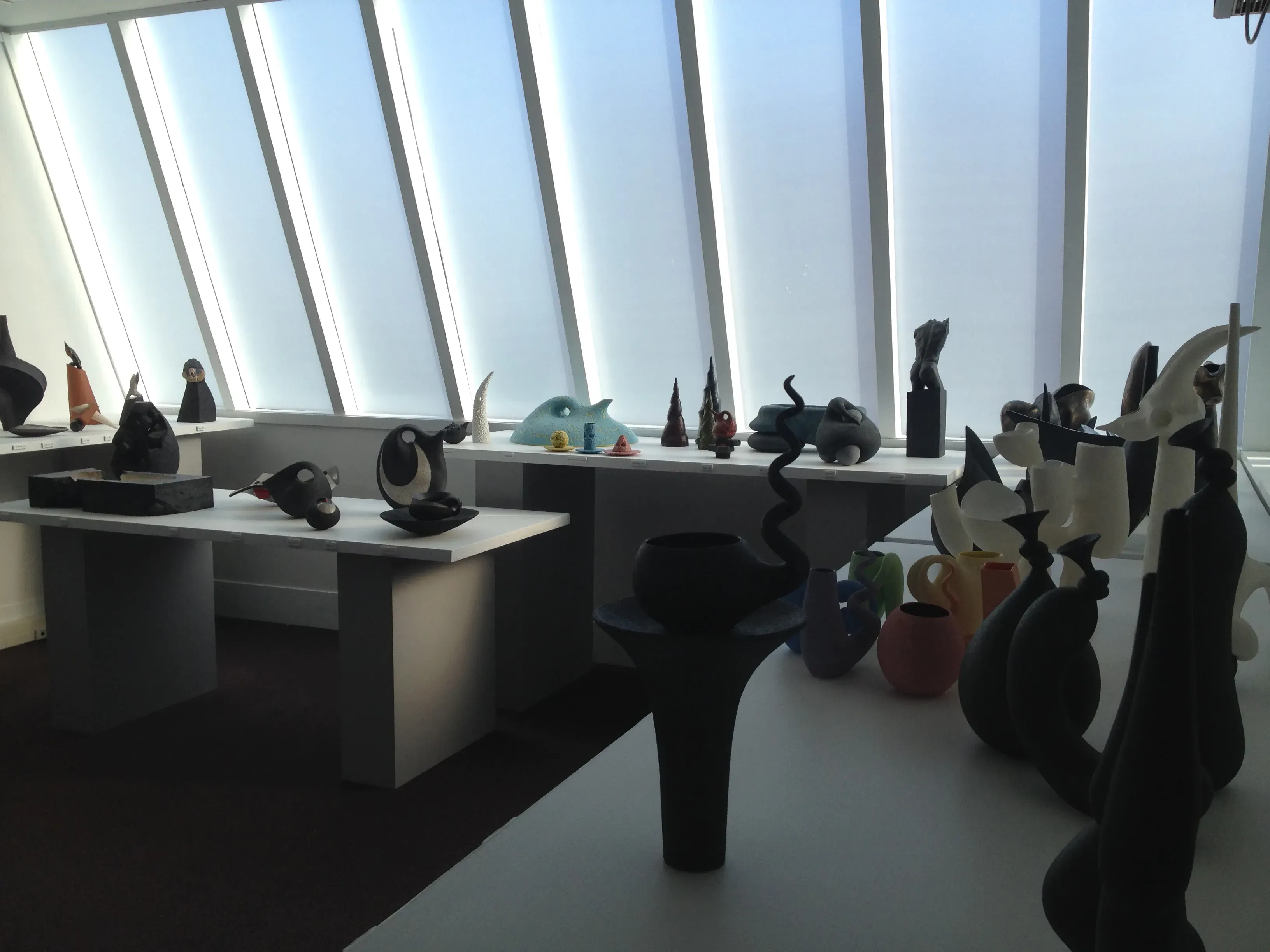 Rudd purchased the distinctive regional award-winning 1960s office building Munford House, and last November opened the museum. Upstairs it elegantly houses a large collection of his work. Rudd’s extravagant, playful serpentine line is framed beautifully by the angular repetitive lines of the building - like quavers on a stave. The fired forms soak up the gorgeous light the building’s large windows afford.