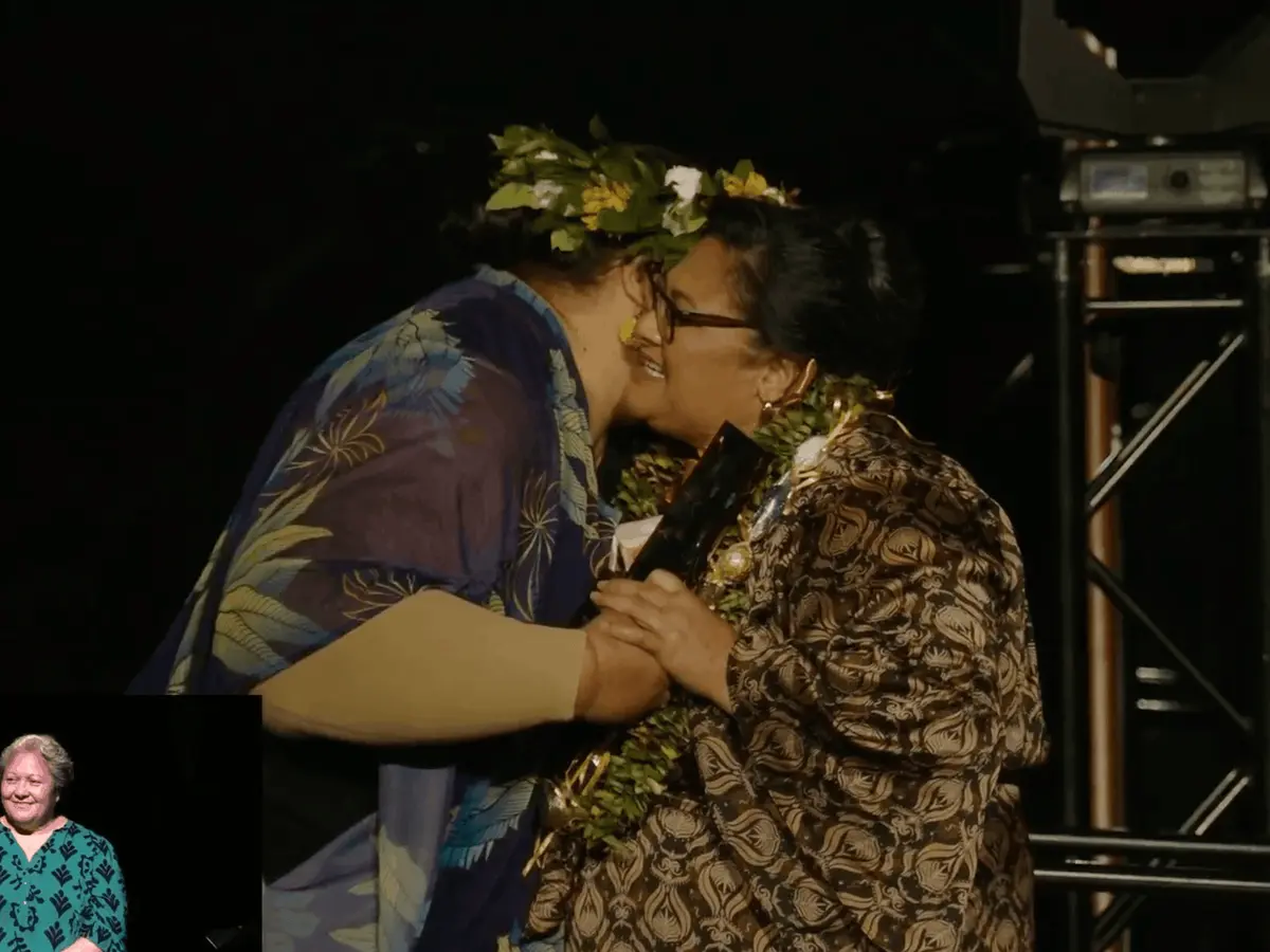 It wouldn’t be a Pasifika celebration without flowers, foliage, singing, dancing, and cheehoos. All were plentiful last night at Te Papa, as the eight Arts Pasifika Awards were announced, received, and livestreamed. The awards have been doled out annually since 1996 by Creative New Zealand to recognise excellence in Pacific arts across a range of artforms and career stages. This year the prize pool amounted to $90,000. Artists are nominated by their communities (or can self-nominate) and assessed by an external panel of peers.