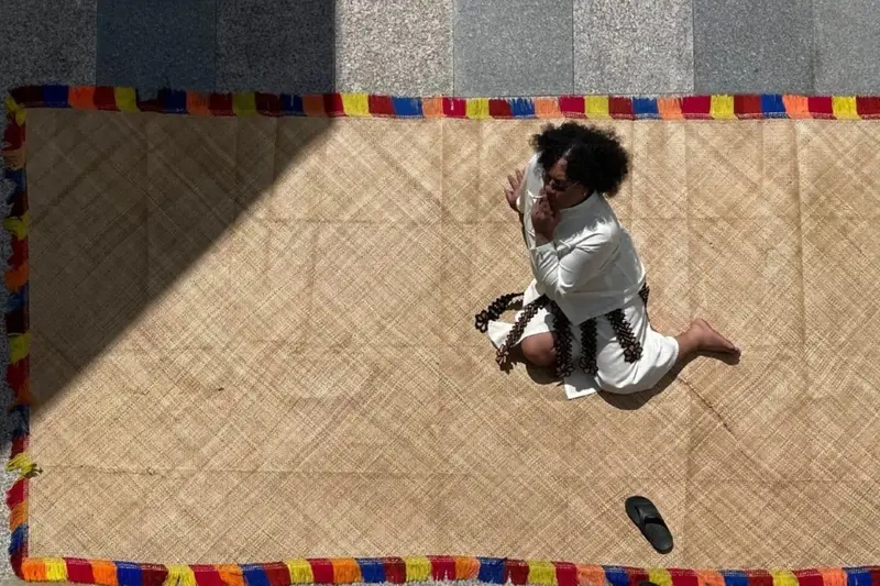 At the heart of his practice is a deeper drive: creating visibility for Leitī (LGBTQIA+) and Pacific communities, and ensuring their stories and experiences are reflected in contemporary art spaces. Funaki's work is grounded in the vā—a Pacific concept centred on the relational space between people, objects, and environments.