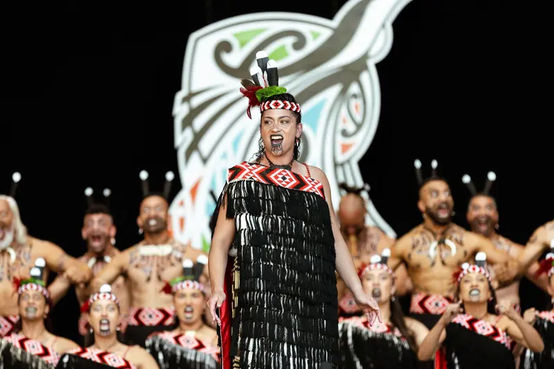 The structure of the concert is deceptively simple: Te Waka Huia performers, Grylls’ choir sings, and then the two groups perform together. In the show, “we are each doing our own thing,” Grylls says. “Te Waka Huia will do their items, and their prep is very obvious. They’ll be stunning, because they’re also in Te Matatini regional mode at the moment!”