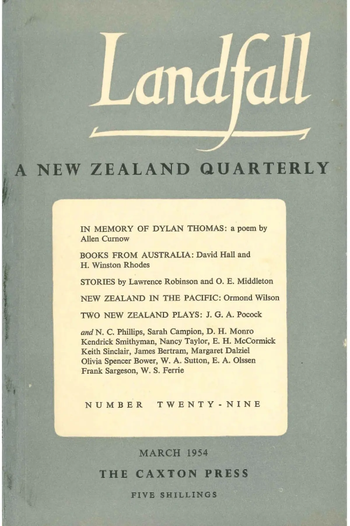The establishment in 1947 of Landfall as a literary quarterly, partly modelled on Cyril Connolly's British magazine Horizon (‘publishing the best creative and critical writing’), was about notions of nationhood and identity. It still is about those things now, but in a more nuanced way, as the fundamentalist nationalism of the 1950s and 1960s shifted to the secular neo-nationalism of the 1980s and 1990s; while post-millennium, we are all eclectic post-nationalists—nomadically at home everywhere and nowhere, thanks to the internet and identity politics. And yet we haven't quite given up on the 1947 Landfall prime-mover credo of 'common' sense and ‘quirky’ sensibility; on the paradox of isolation and abundance; on the dynamic emotion that goes with making Allen Curnow's ‘landfall’, in this ‘far-pitched, perilous, hostile place’ as Ron Mason described it, in this ‘cranky little coda at the bottom of the world’ to quote Ngaio Marsh, in this ‘aaah baaah, aaah baaah ... of shearing pens’ to channel Katherine Mansfield: this belief in a New Zealand literary culture.