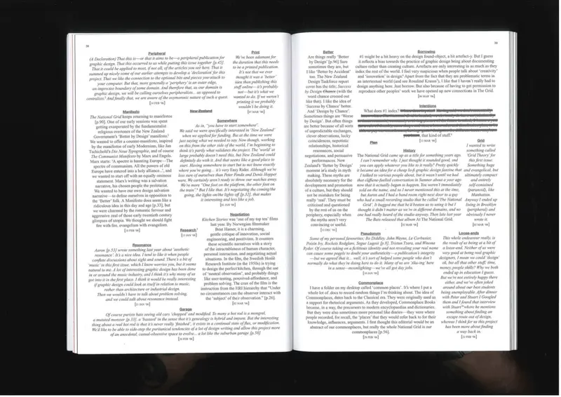 In a concerted effort to find work we considered interesting, both Jonty and I had spent a good part of our careers leading up to The National Grid designing books for museums and art galleries. As a result we ended up, almost accidentally, reading a decent amount of contemporary art writing – writing that was often critical, analytical, interrogative, and grounded in historical precedents. This reading reinforced for us how superficial and self-congratulatory design writing in New Zealand tended to be. Inevitably we wondered why we couldn’t find similarly engaging critical discourses about design in the country we were living and working in. Naively, we started to think maybe we could do something about that.