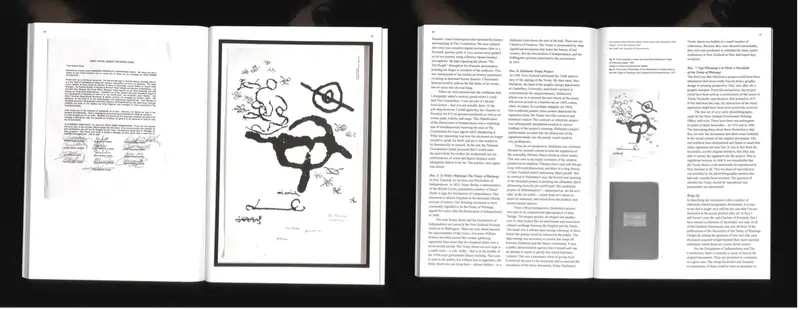 Also in issue #1 Jonty wrote his first piece to touch on Max Hailstone’s problematic Treaty posters. In The Weight of a Document Jonty wrote his way through various contracts and their reproductions. From the American Declaration of Independence to our own Treaty of Waitangi, Jonty began to frame these types of official documents as important parts of an understanding of graphic design history.