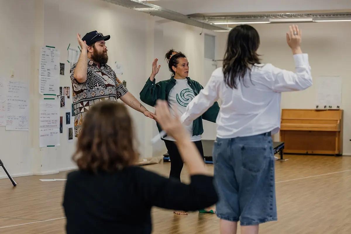 Participating in the rehearsal room means Allen can listen to the actors and ask playwright Ihimaera, “koinei te ia o ō kōrero?”. This collaboration has enabled Allen to preserve the intention and essence of Ihimaera’s initial writing, while creating and shaping a new tongue for Tiri.