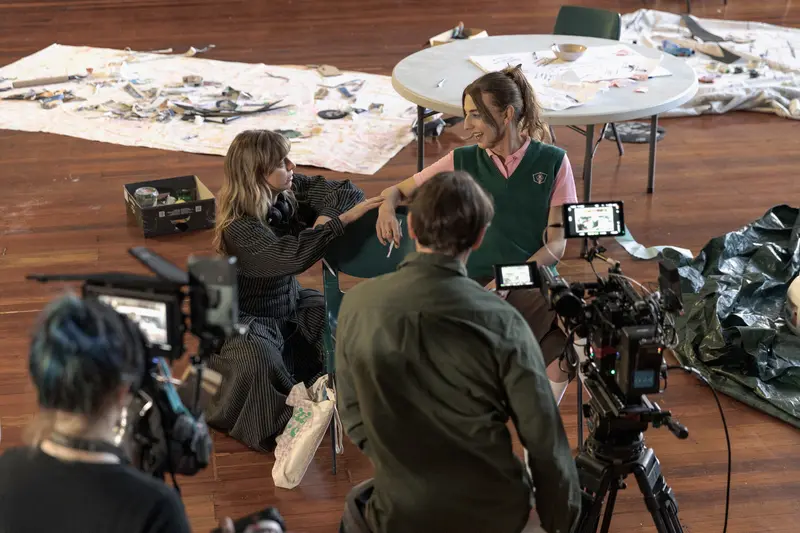 Stella Reid is a theatre maker and filmmaker from Te Whanganui-a-Tara. She is currently “obsessed” with merging the screen and stage, whether that be by setting films in theatres, having film characters stage scenes, or live performances rubbing up on audiovisual material. One example is her short film Stage Challenge, about the national dance competition for schools, that won the UNESCO Wellington Creative City of Film Emerging Talent Award at the NZ International Film Festival last year. Her work defies genres, wrongfoots audience expectations, and interrogates pop culture, feminism, surrealism, grief, and societal collapse.
