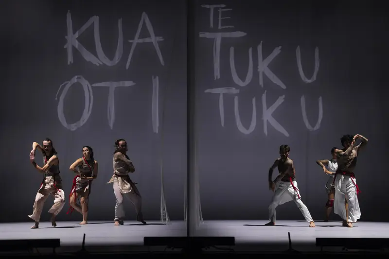 The buses are filled with waiata, mōteatea practice and chatter as we cruise down the Kapiti Coast and into the big city. We gather at the Opera House and send out our thanks – ngā mihi! tēnā koutou! – to the staff as they show us to their seats. This is the first time that many of us have only spoken Māori in a theatre space. For some of us, it’s our first time being at a Māori-choreographed dance show too.
