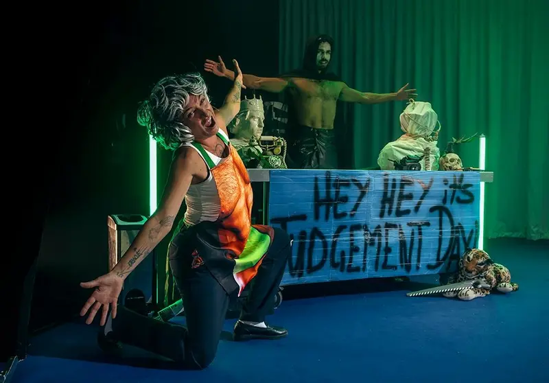 The show that ensues is described by the creators as ‘an epic First Nations vaudevillian musical nightmare’. The quick witty dialogue and over-the-top crassness have the audience literally keeling over in belly laughter. Audible exclamations of ‘What the fuck?!’ can be heard throughout the crowd as we journey through a sardonic story filled with Blak humour and plot-twists so completely jarring we get whiplash.
