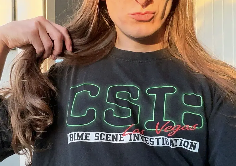 My guilty pleasure is C.S.I (the o.g Las Vegas one). It's so formulaic and self-contained, it is to me the perfect TV show. It's something that knows exactly what it is (cop-slop) and sticks to its simple premise. I think TV today is so lost in the sauce of algorithm and fandom, trying to tell something big and epic and I just want that little burst of joy. I think I’d like my paintings to be like that. Also, Jorja Fox is my lesbian icon.