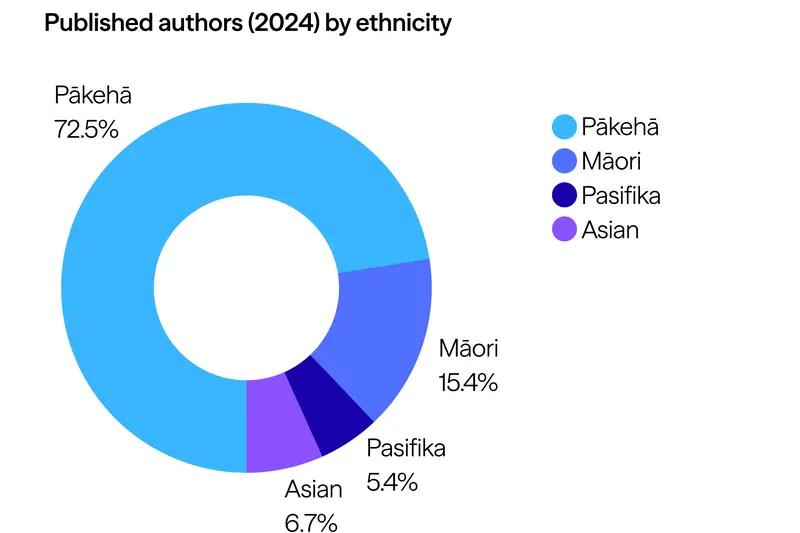 This work builds on the 2023 edition published on my Substack, but originally started with Janis Freegard, who has sporadically documented the demographics of what’s published in Aotearoa on her blog from as early as 2013. This research is a continuation and expansion directly inspired by her previous breakdowns and uses similar methods.