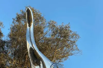 Perched atop a jagged, volcanic plinth, a sci-fi-meets prehistoric creature now towers over Riverside Park in Taupō. -